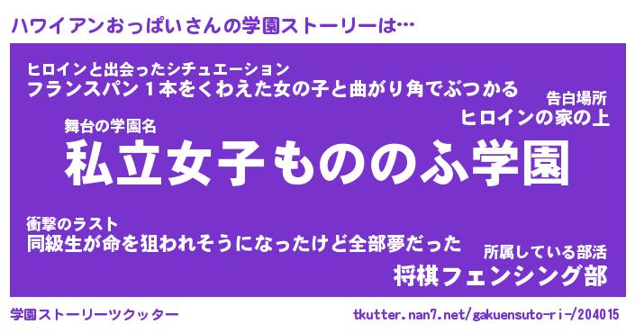| 男性向けラノベタイトル風あだ名 | 『ハワイアンオッパイアートオンライン』 |