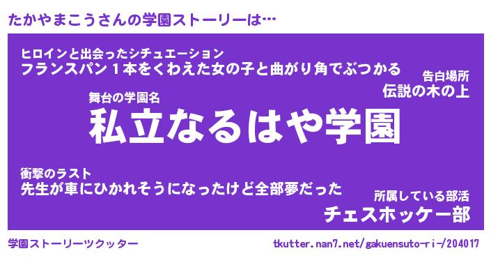 | 肩書あだ名 | 『たかやまこう御曹司』 |