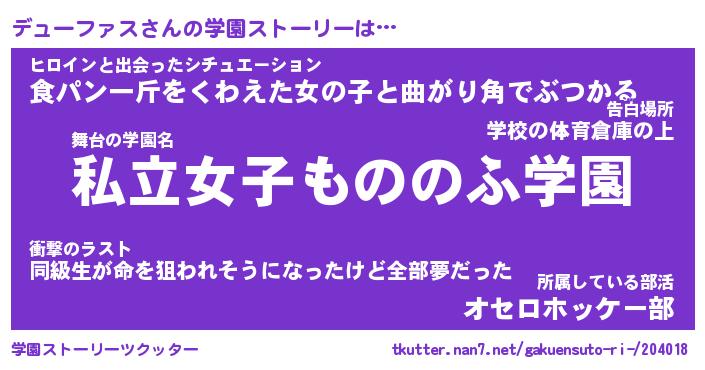 | ファンタジー風あだ名 | 『デュフェル』『ファントムデュス』 |