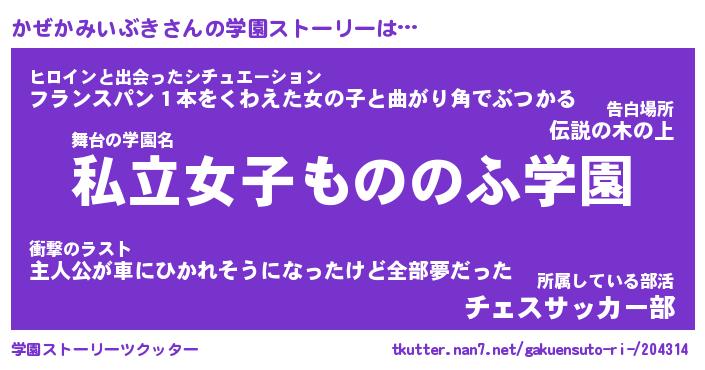 | ヒーロー風カッコイイあだ名 | 『スーパーカゼカミイブキ』 |