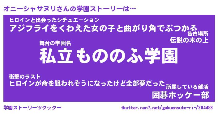 | 女子向けラノベタイトル風あだ名 | 『(仮)オニーシャサヌリのやんごとなき事情』 |