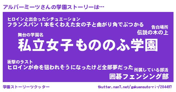 | 女子向けラノベタイトル風あだ名 | 『アルバーミーツ姫と円卓の騎士』 |