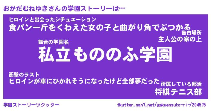 | 男性向けラノベタイトル風あだ名 | 『おかだむねゆきの憂鬱』 |