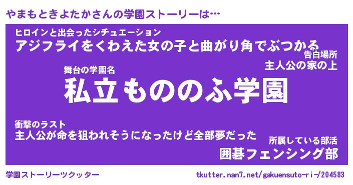 | 女子向けラノベタイトル風あだ名 | 『やまもときよたか姫と円卓の騎士』 |