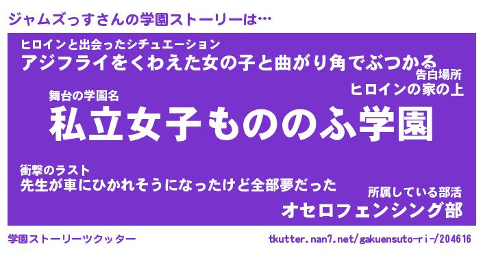 | ヒーロー風カッコイイあだ名 | 『スーパージャムズッス』『天弓騎士ジャ』 |