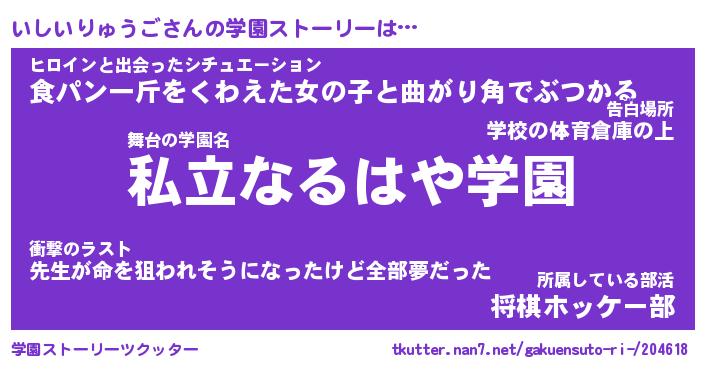 | 男性向けラノベタイトル風あだ名 | 『いしいりゅうごの憂鬱』 |