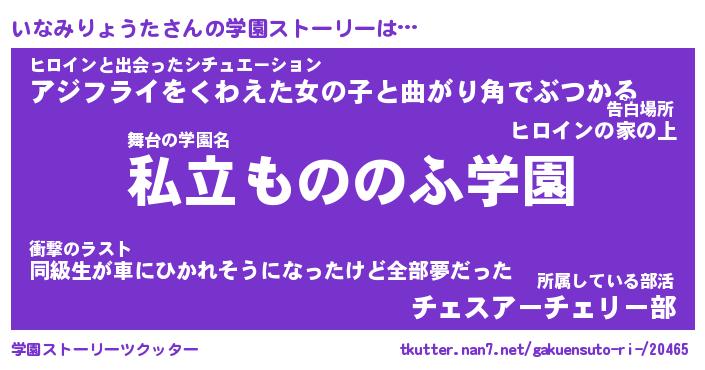 | 男性向けラノベタイトル風あだ名 | 『いなみりょうたの憂鬱』 |