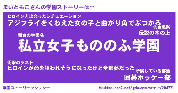 | ファンタジー風あだ名 | 『マイフェル』『エターナルマイトモコー』 |
