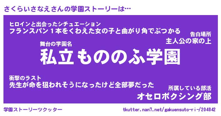 | 男性向けラノベタイトル風あだ名 | 『さくらいさなえの憂鬱』 |