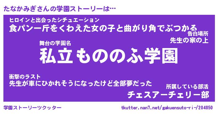 | 女子向けラノベタイトル風あだ名 | 『(仮)たなかみぎのやんごとなき事情』 |
