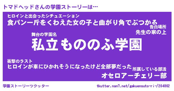 | ヘコむあだ名 | 『トマにゅー』『豆乳』『トマぷりん』 |