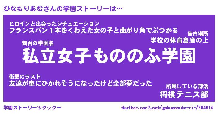 | 男性向けラノベタイトル風あだ名 | 『ヒナモリアムアートオンライン』 |