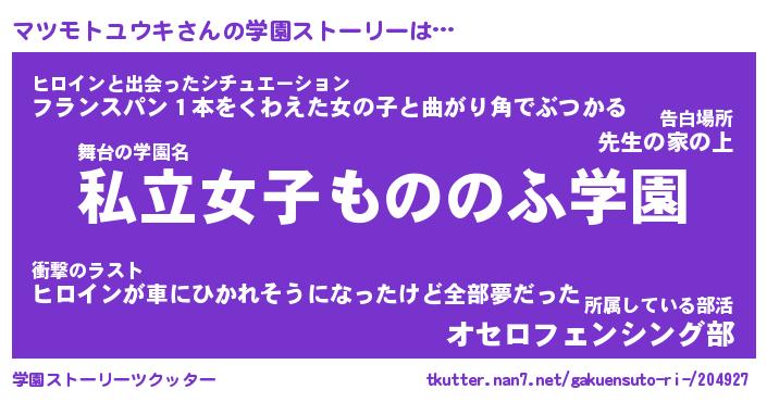 | 女子向けラノベタイトル風あだ名 | 『マツモトユウキ姫と円卓の騎士』 |