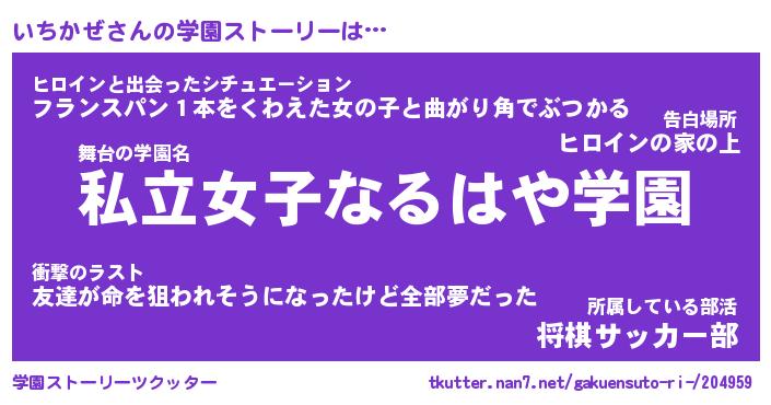 | 女子向けラノベタイトル風あだ名 | 『いちかぜ姫と円卓の騎士』 |