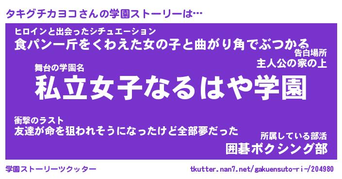 | 女子向けラノベタイトル風あだ名 | 『タキグチカヨコ姫と円卓の騎士』 |