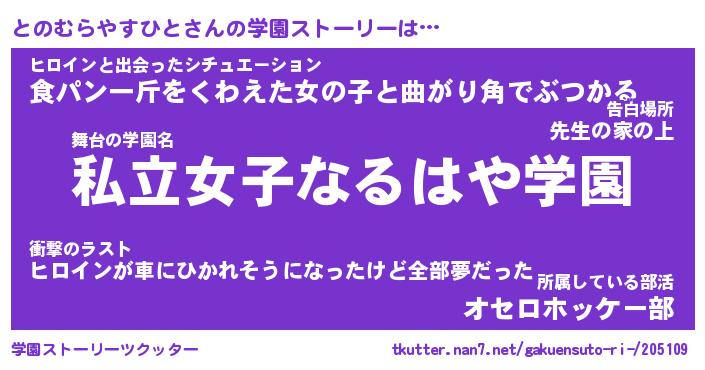 | 女子向けラノベタイトル風あだ名 | 『誰かこのとのむらやすひとを説明してください! ~契約から始まるウェディング~』 |