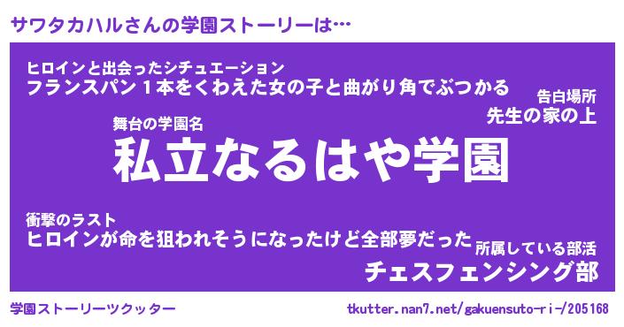 | 男性向けラノベタイトル風あだ名 | 『サワタカハルの憂鬱』 |