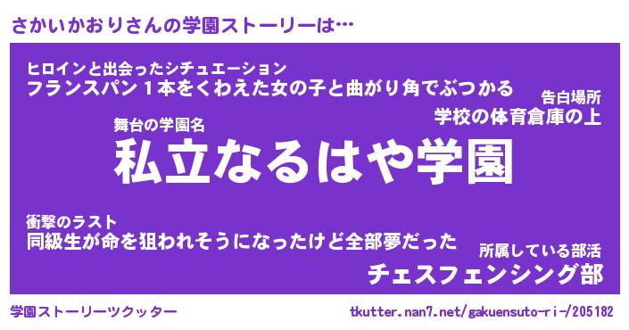 | 男性向けラノベタイトル風あだ名 | 『さかいかおりの憂鬱』 |