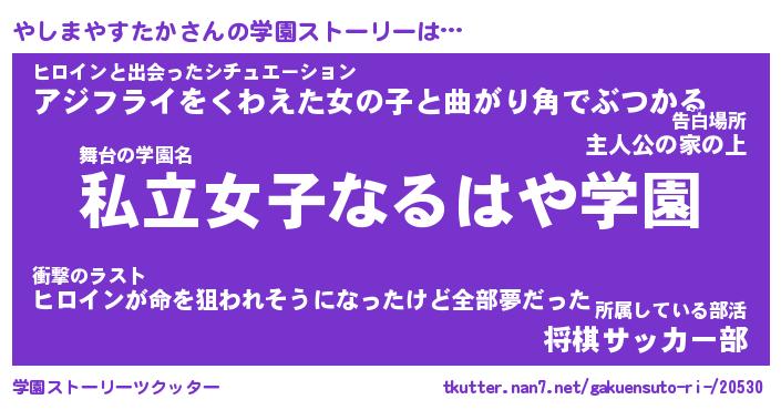 | 男性向けラノベタイトル風あだ名 | 『ヤシマヤスタカアートオンライン』 |