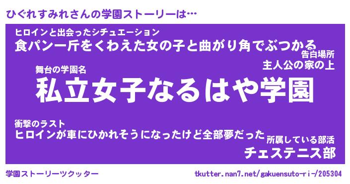 | 女子向けラノベタイトル風あだ名 | 『誰かこのひぐれすみれを説明してください! ~契約から始まるウェディング~』 |