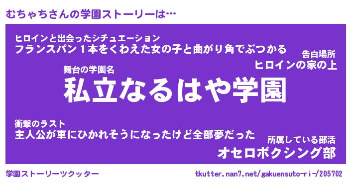 | 女子向けラノベタイトル風あだ名 | 『むちゃち姫と円卓の騎士』 |
