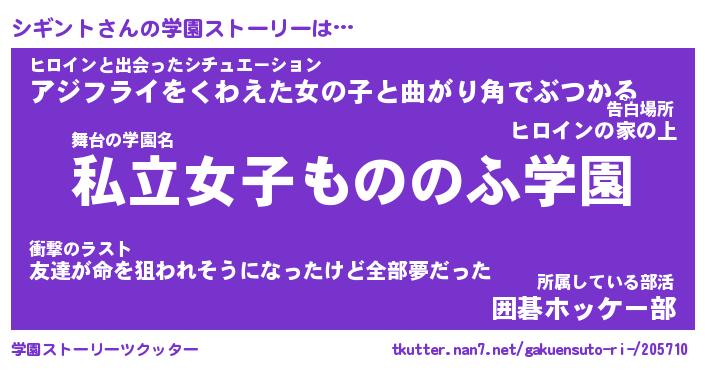 | ファンタジー風あだ名 | 『シギフェル』『エターナルシギントー』 |