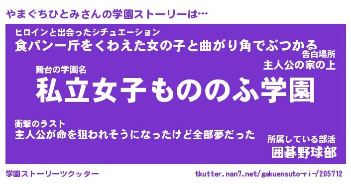 | 男性向けラノベタイトル風あだ名 | 『ヤマグチヒトミアートオンライン』 |