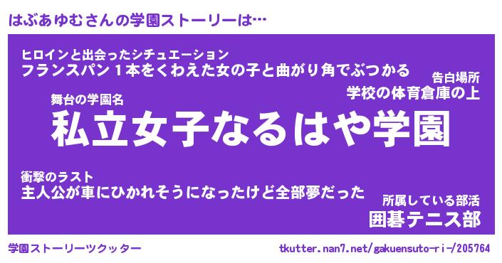 | 女子向けラノベタイトル風あだ名 | 『はぶあゆむ姫と円卓の騎士』 |