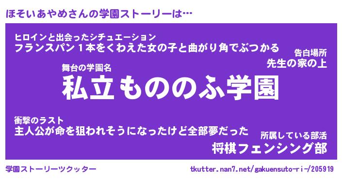 | 胡散臭い通販商品みたいなあだ名 | 『必ず成功するブレスレット…その名も「ほそいあやめ」』 |