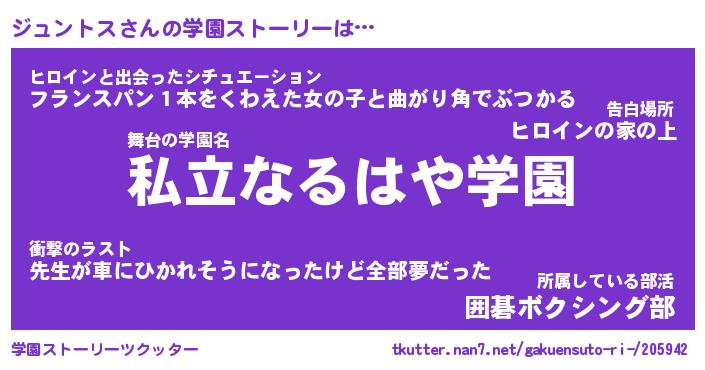 | 男性向けラノベタイトル風あだ名 | 『ジュントスの憂鬱』 |