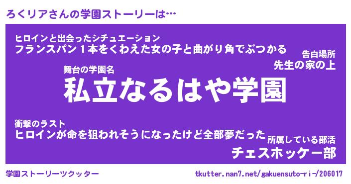 | ファンタジー風あだ名 | 『ロクフェル』『エターナルロクリアー』 |