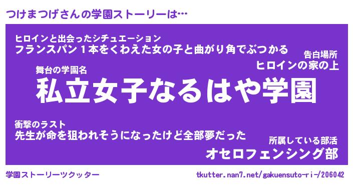| ヒーロー風カッコイイあだ名 | 『スーパーツケマツゲ』『天弓騎士ツケ』 |