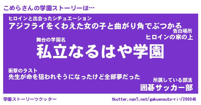 | 告白場所 先生の家の上 …「ふぃぎゅこ」 | 2月17日 06:24 |