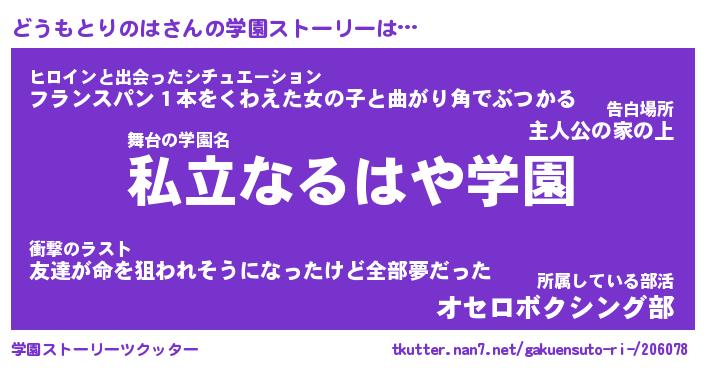 | 女子向けラノベタイトル風あだ名 | 『(仮)どうもとりのはのやんごとなき事情』 |