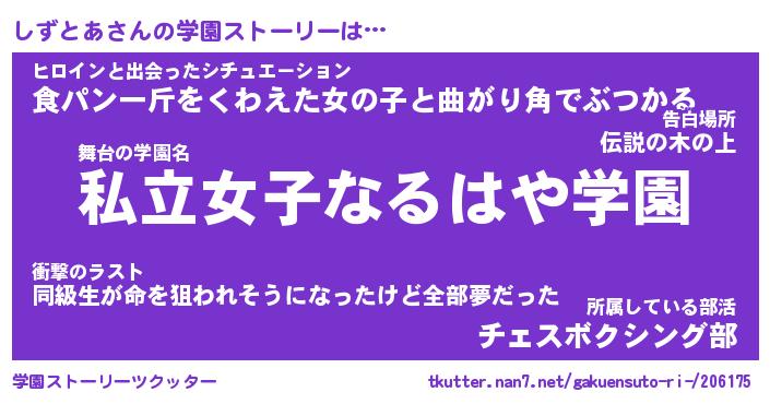 | ファンタジー風あだ名 | 『シズフェル』『エターナルシズトアー』 |