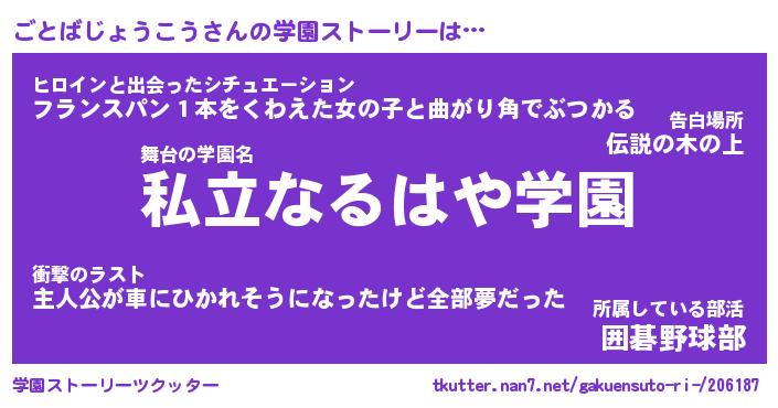 | 女子向けラノベタイトル風あだ名 | 『(仮)ごとばじょうこうのやんごとなき事情』 |