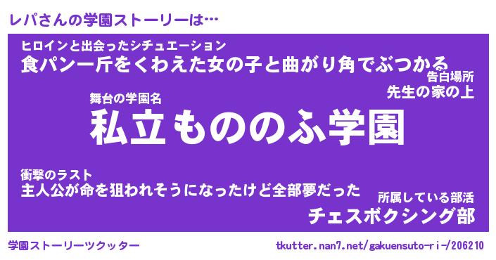 | ファンタジー風あだ名 | 『レパフェル』『エターナルレパー』 |