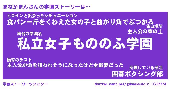 | 告白場所 先生の家の上 …「ふぃぎゅこ」 | 2月17日 06:24 |