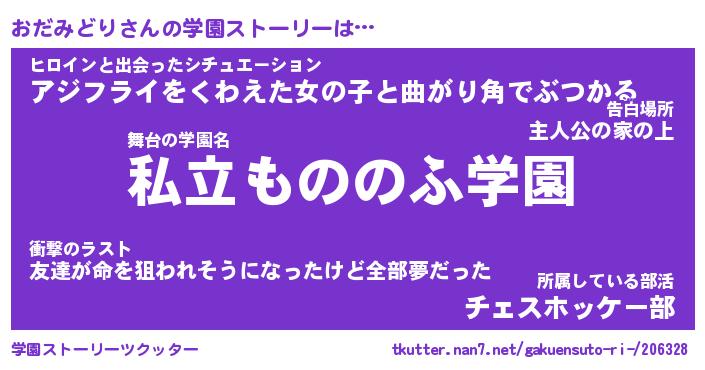 男性向けラノベタイトル風あだ名 | 『おだみどりの憂鬱』 |