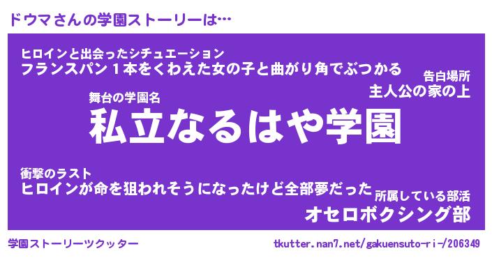 | 男性向けラノベタイトル風あだ名 | 『ドウマの憂鬱』 |