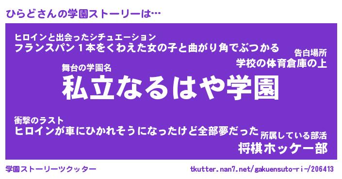 | 男性向けラノベタイトル風あだ名 | 『ひらどの憂鬱』 |