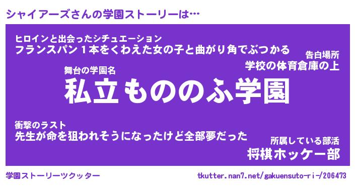 | ヘコむあだ名 | 『シャにゅー』『つくし』『シャを』 |