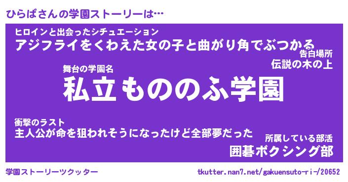 | 男性向けラノベタイトル風あだ名 | 『ひらばの憂鬱』 |