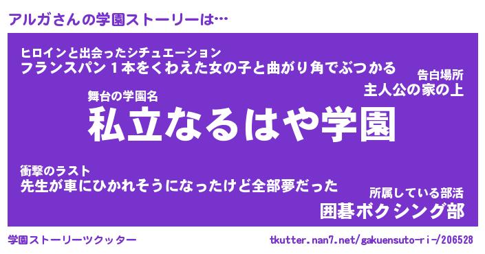 | 女子向けラノベタイトル風あだ名 | 『アルガ姫と円卓の騎士』 |