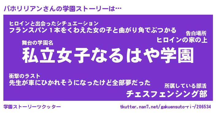 | 女子向けラノベタイトル風あだ名 | 『バホリリアン姫と円卓の騎士』 |