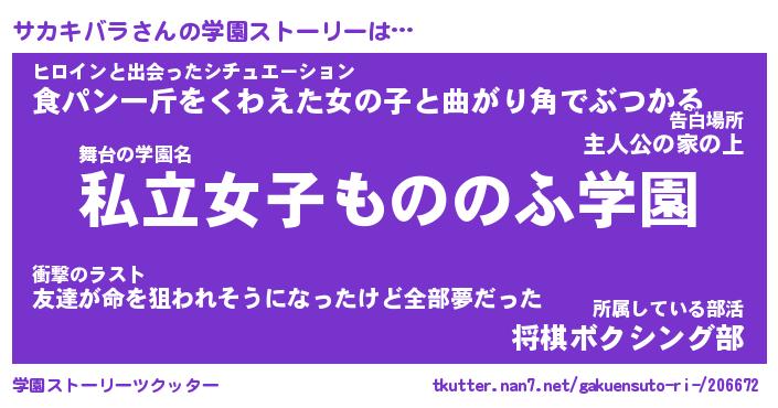 | 男性向けラノベタイトル風あだ名 | 『サカキバラアートオンライン』 |