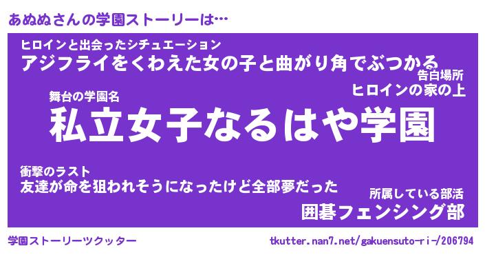 | ファンタジー風あだ名 | 『アヌフェル』『エターナルアヌヌー』 |
