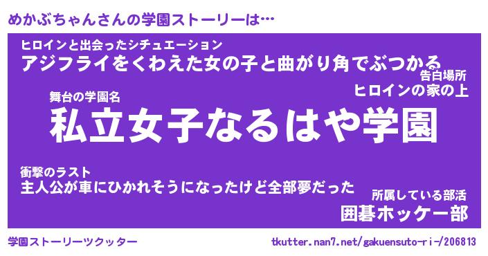 | 胡散臭い通販商品みたいなあだ名 | 『モテモテ間違いなし霊験あらたかなお札…その名も「めかぶちゃん」』 |