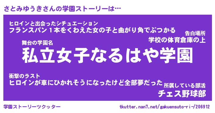 | 男性向けラノベタイトル風あだ名 | 『サトミユウキアートオンライン』 |