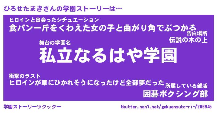 | 女子向けラノベタイトル風あだ名 | 『ひろせたまき姫と円卓の騎士』 |
